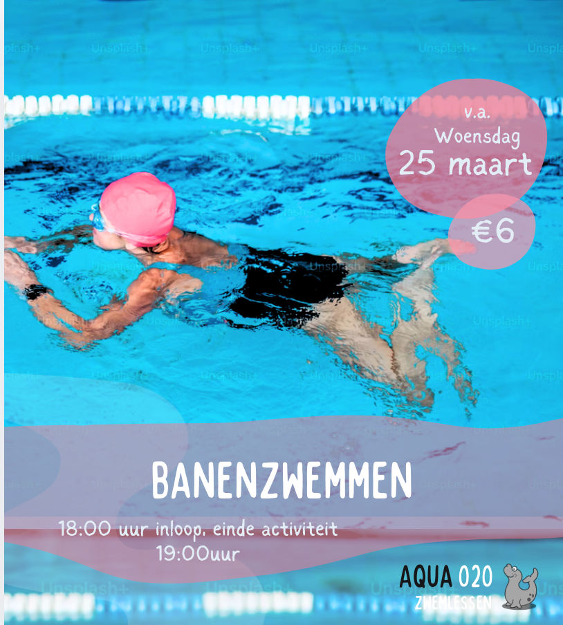 Tijdens het banenzwemmen kunt u van 18.00uur tot 19.00uur gebruik maken van het zwembad. Er is een lifeguard aanwezig en coaching op zwemslagen is mogelijk.